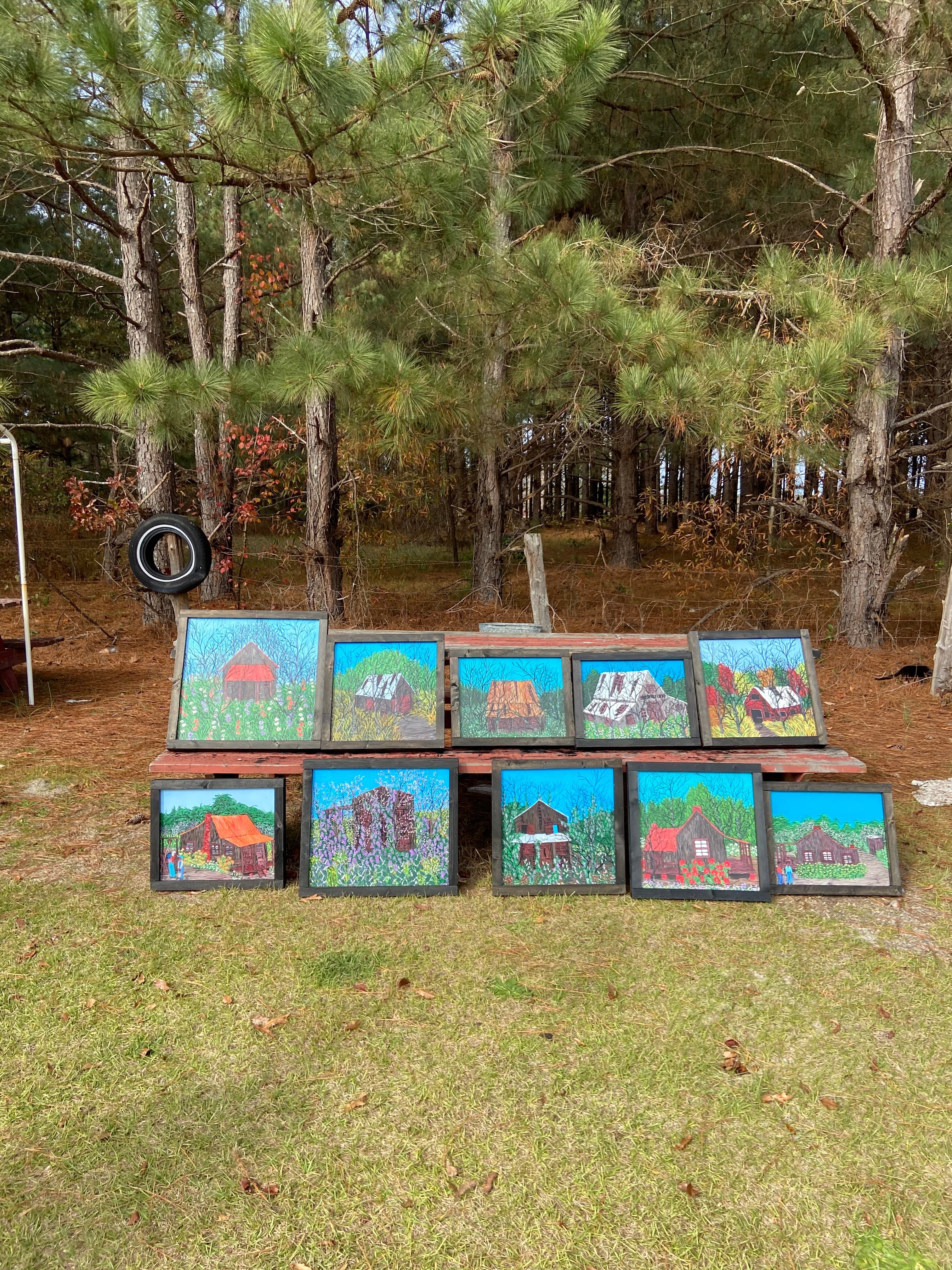 Barn in the Woods with Flowers